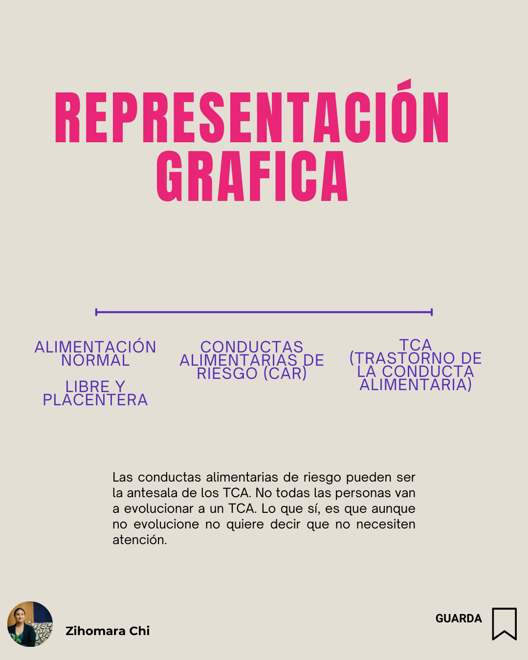 Gráficamente podemos observar las diferencias en un continuo en donde de lado izquierdo podemos ver una alimentación intuitiva, normal y con placer, en la parte media se encontrarían las conductas alimentarias de riesgo y en el extremo derecho encontramos los TCA´s (trastornos de la conducta alimentaria).